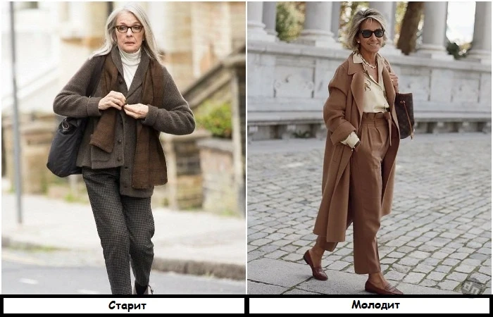 Тогда почему такая одежда противопоказана возрастным красоткам? Все дело в оттенке – темные землистые тона накидывают несколько лет, а также создают мрачный вид. В обратную сторону действуют теплые, мягкие тона, например, какао или шоколадный. Они освежают цвет лица, придают образу легкости, изысканности и привлекательности. А если составить аутфит из коричневых и бежевых оттенков, получится добиться эффекта «тихой роскоши».