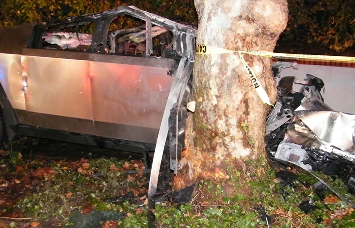 Кадр с места крушения Cybertruck./ Фото: electrek.co