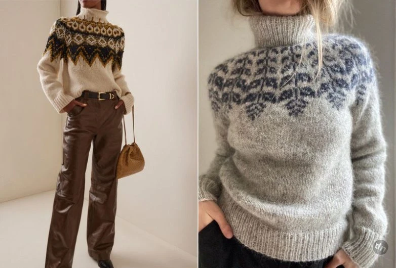 Такой свитер — это вещь вне времени. Но сейчас активно развивается тренд на натуральность, ремесленные техники и этнические мотивы. Лопапейса вписывается в него максимально органично. Анастасия: «Мы устали от слишком базовых и безликих вещей. Хочется фактуры, характера и истории. Кроме того, в моде остается расслабленный силуэт и уютный трикотаж в стиле загородного отдыха. Лопапейса как раз сочетает объем, комфорт и заметный акцент в портретной зоне — за счет орнамента».