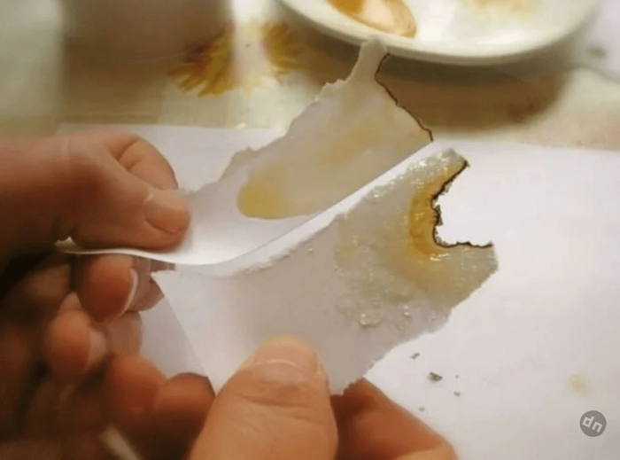 Небольшую медовую капельку наносят на бумажный лист и аккуратно распределяют тонким слоем, оставляя сухие края. Затем бумагу поджигают с одной стороны. Если мёд натуральный и не разбавлен водой или сиропом, участок, покрытый им, не воспламеняется и не прогорает так быстро, как сухая часть листа. Область с мёдом может слегка потемнеть, но не должна активно гореть или пузыриться. Если в составе присутствует избыточная влага или сахарные добавки, бумага в месте нанесения быстрее намокает, может начать тлеть или издавать запах карамели. Однако важно понимать, что такой способ даёт лишь ориентировочное представление о качестве.
