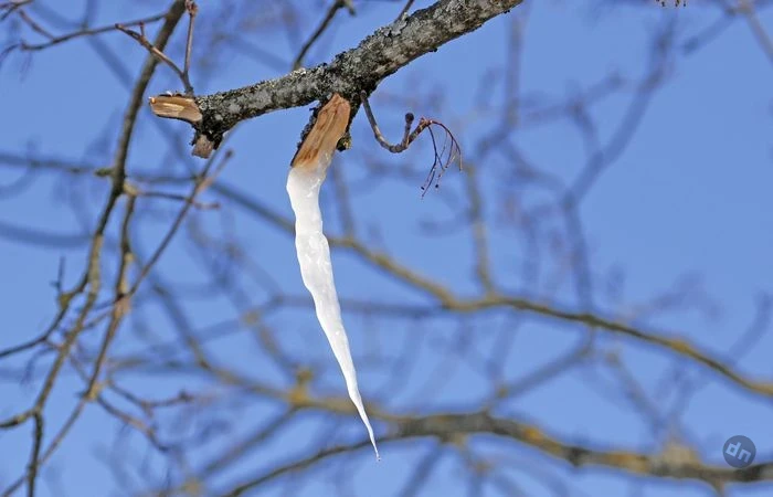 Сбивать наледь палками, трясти ветки или поливать их горячей водой нельзя. От ударов древесина трескается, а резкое нагревание приводит к повреждению тканей и образованию микротрещин. Лучше дождаться естественного потепления (таким образом, лёд постепенно растает сам, не причиняя дополнительного стресса растениям).
