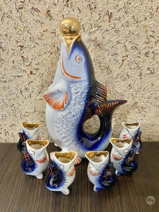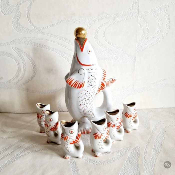 Пожалуй, даже те, кто не вырос в СССР, видел у своих мам и бабушек в серванте этот набор керамических изделий — стая карпиков, обычно красно-белого или синего цвета с элементами позолоты. Традиционно он состоял из семи элементов, где шесть были маленькими, а одна рыбка резко выделялась крупным размером. И заполучить такой на почётное место в серванте стремились многие, хотя обычно их не использовали — набор выступал как украшение и предмет гордости.