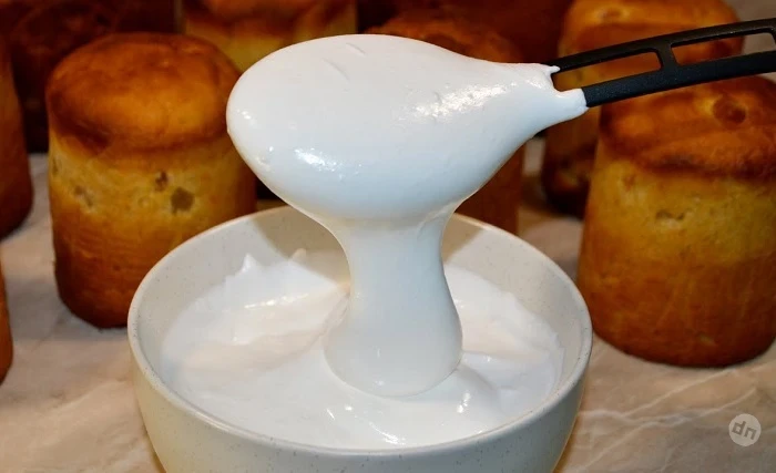 Оказывается, глазурь – это не только вкусно, красиво и празднично. У нее есть еще одна функция – продлевать «срок годности» кулича. Благодаря такой «шапочке», выпечка дольше остается свежей. Старайтесь, чтобы глазурь получилась густой, иначе она стечет по куличу вниз и оставит просветы. Классический вариант – на белках с сахарной пудрой и лимонным соком, но также часто используют глазурь с желатином, из маршмэллоу и пр.