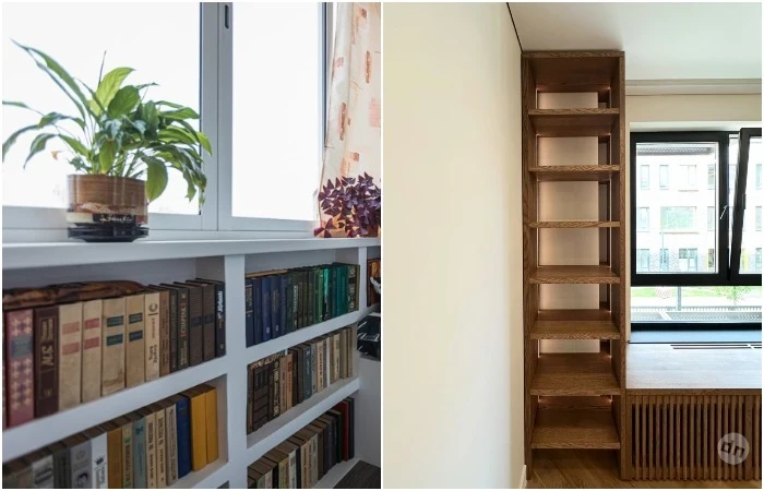 Идея 2: Стеллажи по бокам от окна