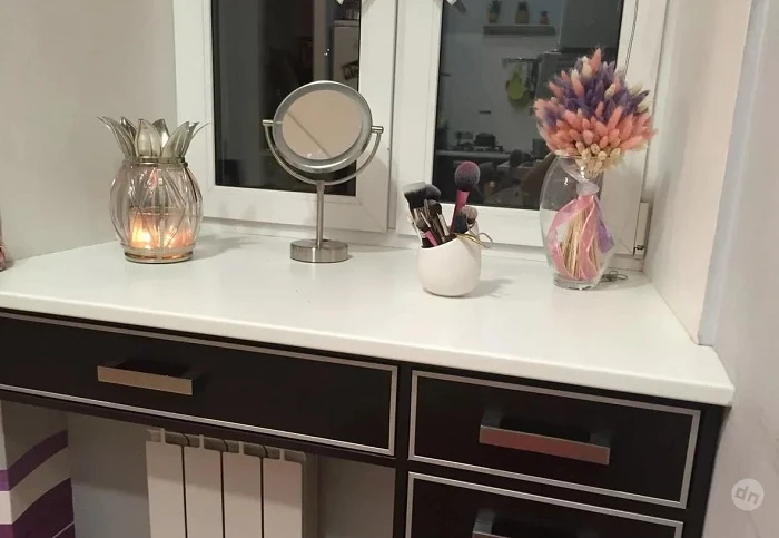 Если речь идет об окне в спальне, предлагаем нестандартный метод использования подоконника. Сделайте из него туалетный столик. Обычно в комнате не хватает места для этого предмета интерьера, и девушкам приходится краситься и хранить свою косметику в ванной. Согласитесь, это не слишком удобно, да и свет в ванной комнате оставляет желать лучшего.