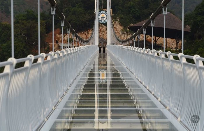 Bach Long во Вьетнаме – мост, который не зря называют «Белым драконом». Его длина превышает шестьсот тридцать метров и по этому показателю он считается самым длинным стеклянным мостом в мире. Конструкция проходит вдоль скал и частично нависает над ущельем на высоте около ста пятидесяти метров, вот только под ногами не бетон, а стеклянный настил. Пол выполнен по уникальной технологии и по расчётам инженеров, мост одновременно выдерживает сотни посетителей разной весовой категории.
