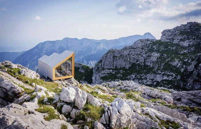 Этот компактный приют площадью всего двенадцать квадратных метров расположен прямо на скалистом гребне Камникско-Савиньских Альп, недалеко от Згорне-Езерско. Удивительно то, что сооружение доставили сюда уже в собранном виде с помощью вертолётов, иначе добраться до этой точки попросту невозможно. Домик с остеклённым фасадом выдерживает суровые погодные условия и сильные ветры, оставаясь надёжным укрытием для альпинистов и туристов, обожающих горные маршруты. Внутри всё предельно функционально от спальных мест и бытовой техники до панорамного вида на горные пики. Здесь нет ничего лишнего – только тишина, спокойствие, высота и ощущение полной оторванности от мира внизу.