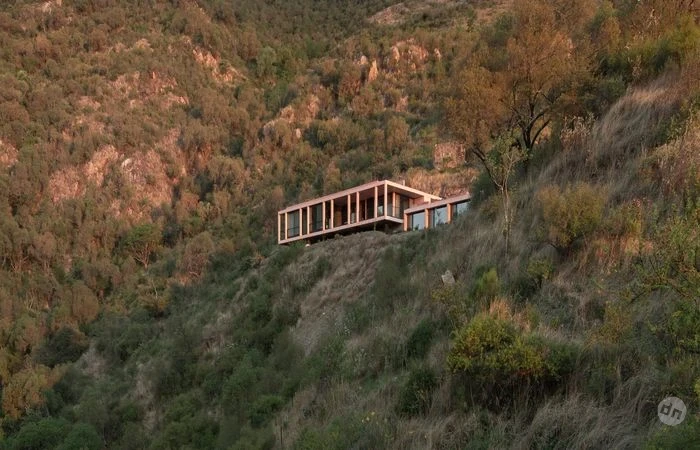 Этот дом расположен на склоне горы с видом на долину реки Терсера в регионе Каламучита и сразу воспринимается как часть местного ландшафта. Архитекторы выбрали розовый бетон, по оттенку почти совпадающий с цветом почвы, благодаря чему здание становится продолжением природы. Чёткие, строгие линии подчёркивают суровую красоту этих мест, где нет ничего лишнего. Постройка состоит из двух уровней, грамотно встроенных в рельеф. Верхний – открытый и обзорный (здесь расположены общие зоны с панорамным остеклением, откуда долина просматривается на многие километры). Нижний уровень, напротив, скрыт и более приватный (в нём находятся спальни и бассейн, защищённые от ветра и посторонних взглядов). Переход между уровнями устроен так, что пространство постепенно погружается в склон, создавая ощущение уединения. А террасы и открытые площадки лишь усиливают контраст с природой, благодаря чему можно наблюдать смену света, туманы и закаты, не покидая дом.