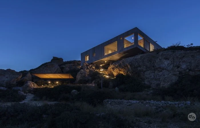 Этот дом на острове Карпатос словно балансирует на краю скалы, открывая прямой вид на Эгейское море. Архитекторы из ООАК сознательно выбрали столь необычный ландшафт, тем самым позволяя зданию не прятаться в скалистой местности, а наоборот – заявить о себе, контрастируя с грубой фактурой гор. При этом вмешательство в скалистый рельеф сведено к минимуму (дом аккуратно вписан в рельеф и не разрушает природную линию клона). Главный элемент здесь – внутренний дворик, вокруг которого выстроена вся композиция. Он защищает от ветра, создаёт приватное пространство и одновременно наполняет дом светом. С улицы архитектура выглядит почти замкнутой, но внутри она раскрывается через проёмы, террасы и переходы, направленные в сторону моря. Материалы подобраны с учётом климата (светлые поверхности отражают солнце, а массивные стены сохраняют прохладу в жаркие дни). Интерьер организован так, чтобы посетители или жильцы могли проводить время как компанией, так и уединиться в специально отведённой зоне.