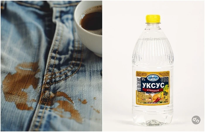 Если вы пролили кофе на джинсы, самым лучшим помощником в выведении пятен станет 9-процентный уксус. Обратите внимание, что эссенцию брать нельзя, так как в ней содержится высокая концентрация уксусной кислоты, которая может повредить ткань. Как и любое другое средство, уксус лучше всего справляется со свежими пятнами, но при необходимости может вывести и засохшие. Смочите ватный диск уксусом, приложите к пятну и оставьте на 15 минут. После этого прополощите и постирайте вещь.