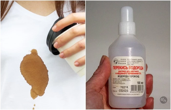 Чтобы очистить светлую одежду, используйте перекись водорода. Она обладает отбеливающим эффектом, поэтому от пятна не останется никакого следа. Смочите ватный диск антисептиком, приложите к загрязненному участку и оставьте на 20 минут. Если диска под рукой нет, можете просто налить перекись на пятно, главное – не переборщить с количеством. По истечении времени смойте остатки средства и постирайте одежду в стиральной машине.