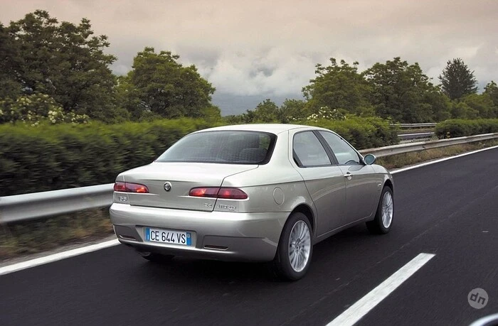 Седан Alfa Romeo-156 по праву считается альтернативой консервативным моделям авто. Главными изюминками его дизайна являются характерный клиновидный капот, невидимые ручки задних дверей и треугольная радиаторная решетка.