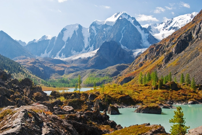 Гористая местность на юге Сибири с потрясающими видами и возможностью путешествовать на конях.