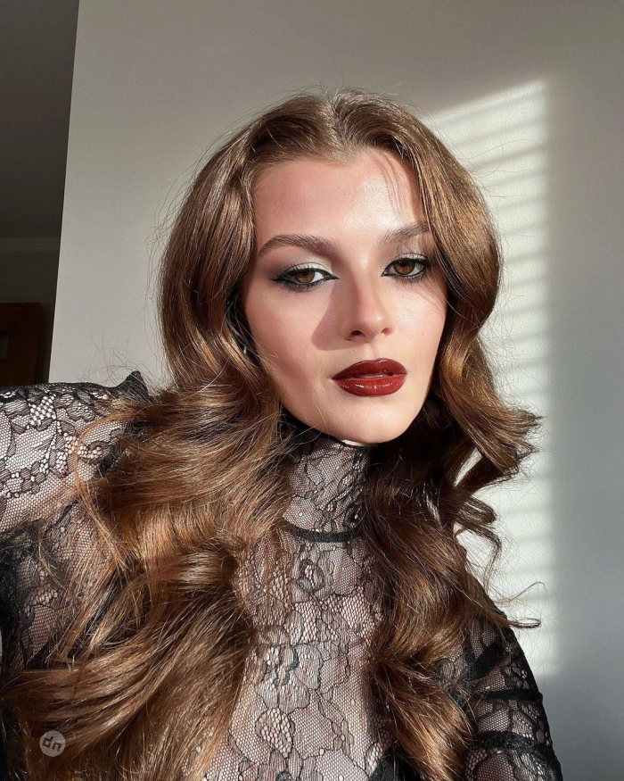 Вопреки привычным ассоциациям весны с легкостью и нежностью, одним из ключевых трендов сезона становятся готические губы. Этот выбор для тех, кто не боится выделиться и добавить в свой образ нотку загадочности. Использование насыщенных оттенков помады, от классического красного до глубокого вина, в сочетании с черным контуром, создает эффект, будто вы только что насладились бокалом красного вина. Это отличный способ подчеркнуть губы и сделать акцент на них в образе.