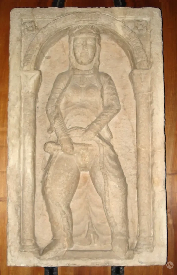 Женщина, бреющая лобковые волосы. Рельеф XII века, в настоящее время находящийся в Музее античного искусства в замке Сфорца в Милане