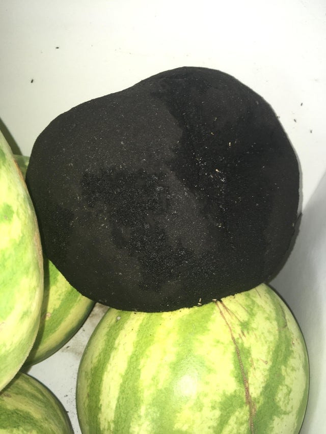 Забыл арбуз на несколько месяцев. Посмотрите, как он сильно почернел: