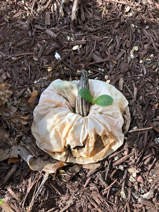 Мы оставили наши тыквы с Хэллоуина на всю зиму на улице, и из одной из них растёт новое растение:
