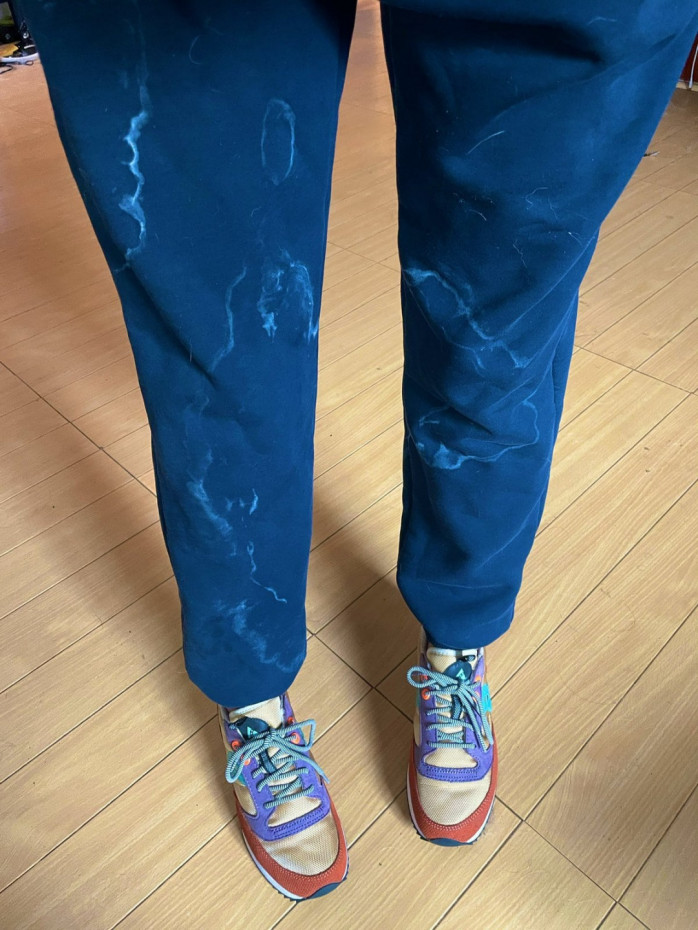 Штаны пролежали в машине около месяца. Солнце создало на них узор: