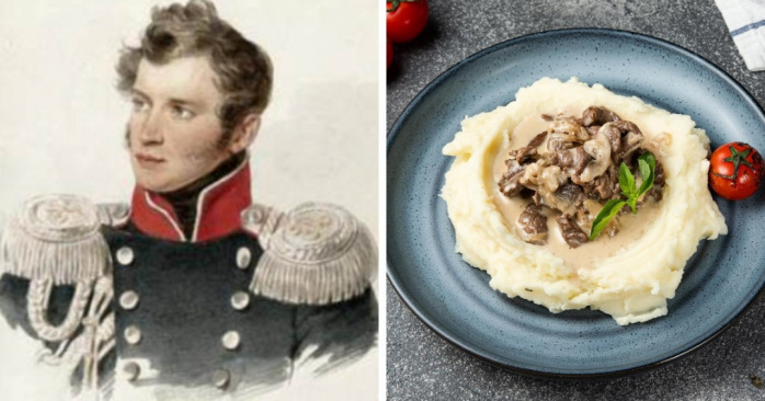 Блюдо названо в честь графа Александра Григорьевича Строганова. Его придумал один из поваров графа, который удачно объединил французскую и русскую кухни, в результате чего на свет родился один из вкуснейших кулинарных шедевров.