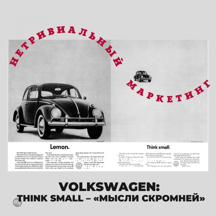 В 1959 году агентство Doyle Dane Bernbach создало для Volkswagen рекламную кампанию «Think Small», положив начало новой эре в автомобильной рекламе. «Жук» Volkswagen, изначально воспринимаемый как необычный и некрасивый автомобиль, был представлен как символ скромности и практичности, что привело к его неожиданному успеху на рынке.