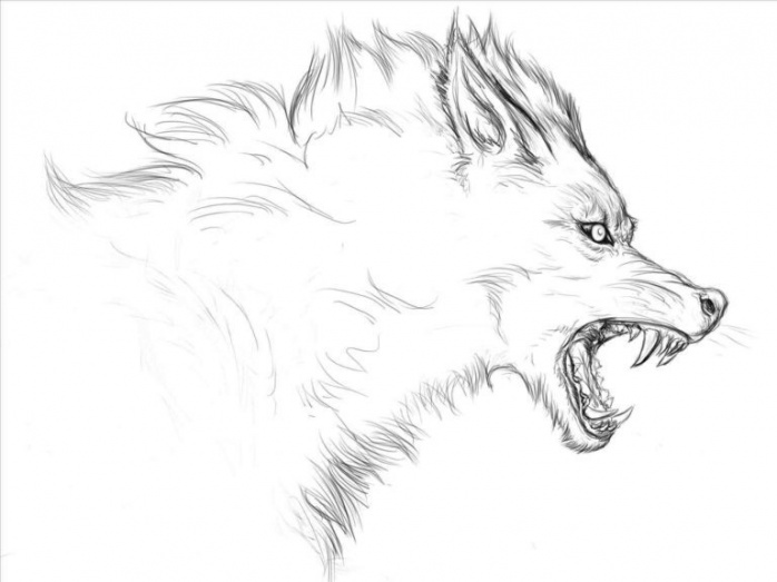 Оскал волка для срисовки.