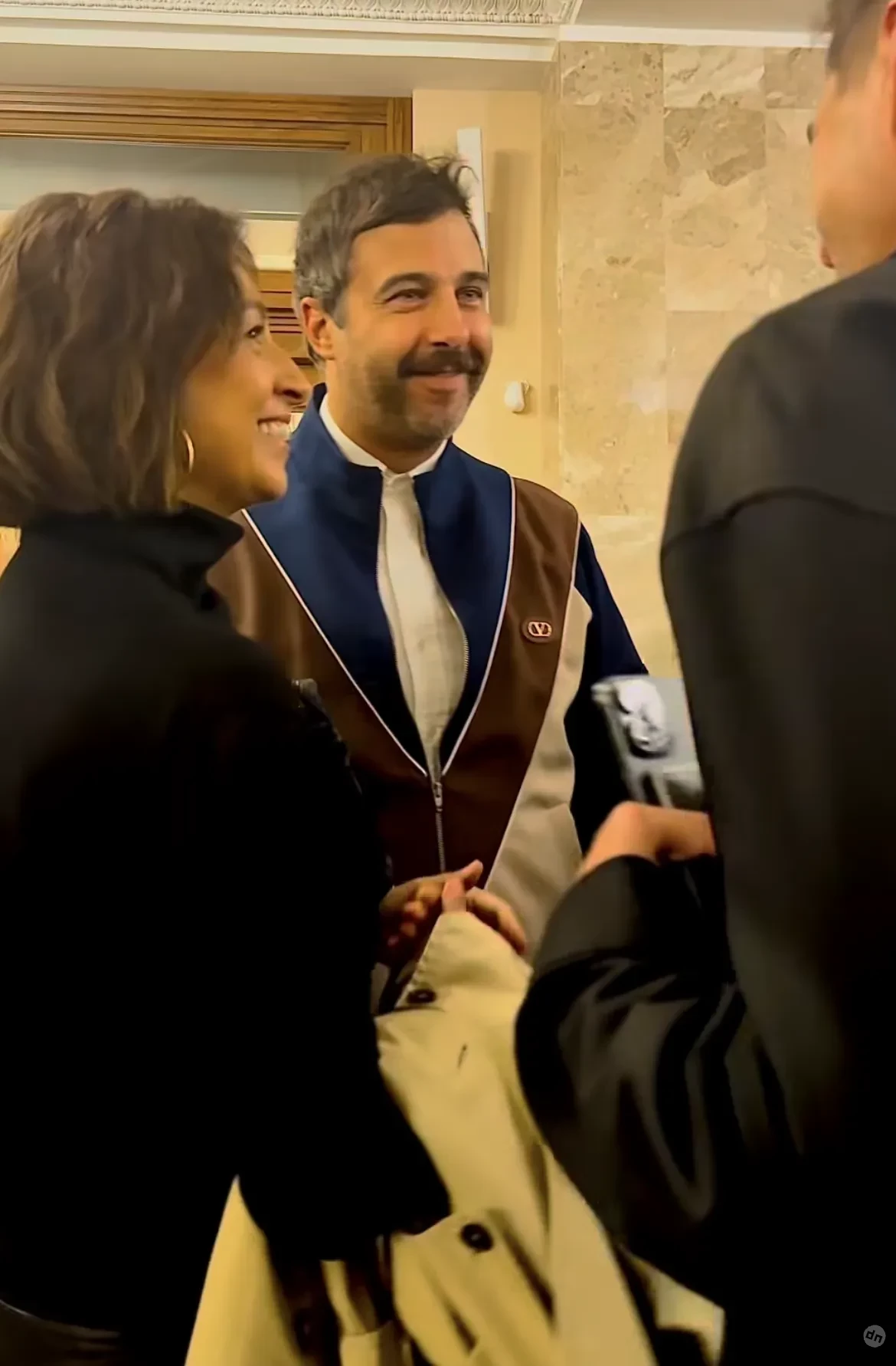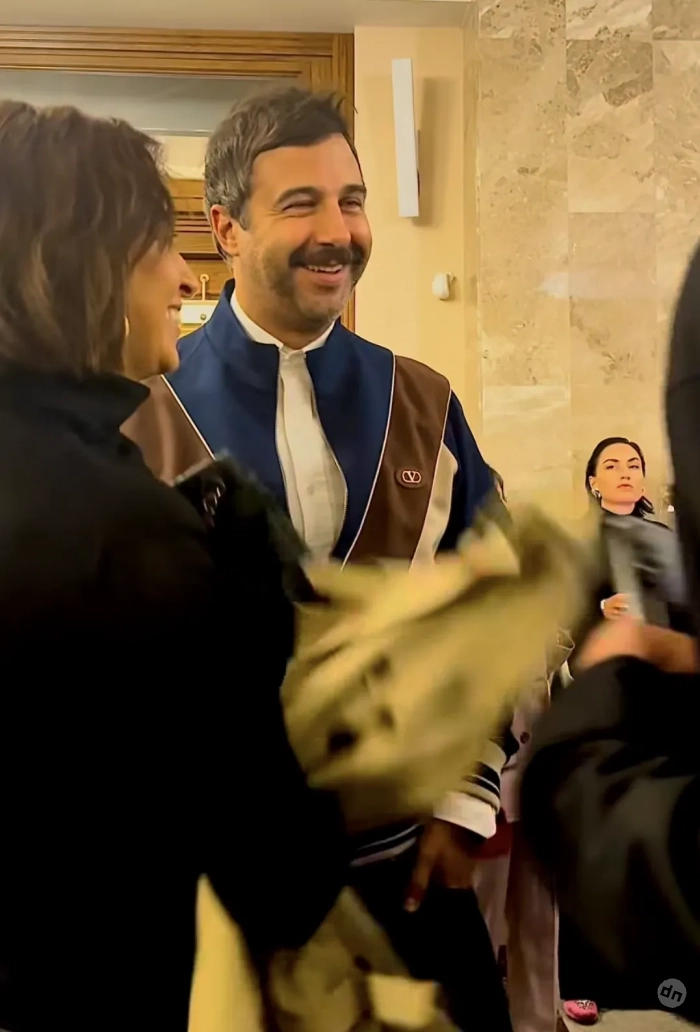 Супругов засняли перед спектаклем, когда они встретились в фойе Театра эстрады с Дмитрием Викулиным. 47-летний Иван был одет в белую рубашку и олимпийку Valentino, а Наталья — в чёрную кофту и бежевый тренч.