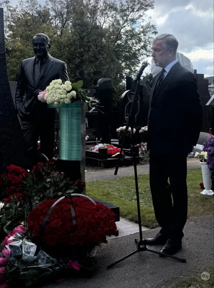 Константин ЭрнстЕкатерина и Александра Стриженовы, Эдгард ЗапашныйЗнаменитости принесли цветы к могиле Маслякова и выступили с речами. "Александр Васильевич стоит, облокотившись на телевизионную стойку, где у него всегда лежал сценарий игры КВН, и улыбается своей фирменной неповторимой улыбкой! Кажется, что вот-вот мы услышим команду "Мотор!" и Масляков скажет: "Мы начинаем КВН!". Мы аплодируем президенту планеты КВН — человеку, чьё имя навсегда вписано в историю российского телевидения", — написала Екатерина Стриженова в соцсетях.