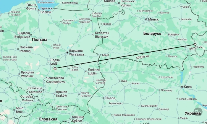Напомню, что, согласно польской версии, наиболее ретивая «Гербера» с серией «ЫЫ» на хвосте долетела аж до села Мнишкув, что примерно в 250 км от восточной границы страны. Если допускать, что ЫЫ-«Герберка» летела исключительно по прямой линии (не отклоняясь ни на йоту) и выпущена она была, ну, прям от самой ближайшей точки «основной части» Российской Федерации (а это юго-запад Брянской области), то пролетела она, не будучи сбитой, 806 км.