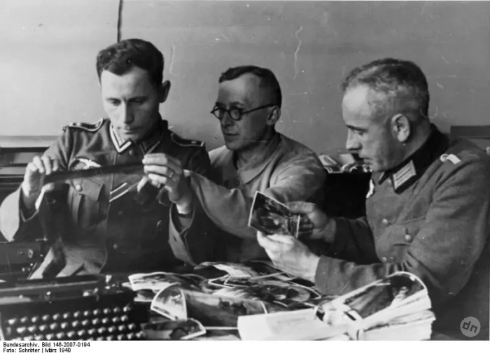 Солдаты роты пропаганды готовят информационный материал, март 1940 год. Bundesarchiv Bild 146-2007-0194.