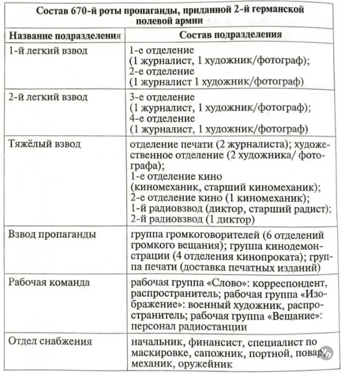 Состав роты пропаганды на примере 670-й роты. Оригинал: Bundesarchiv Bild 101I-062-2110-06.