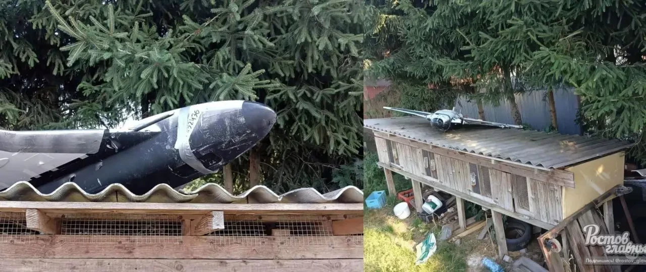 Не секрет, что у режима Зеленского есть определенное количество сбитых и упавших «Гербер», запускаемых ВКС РФ для сопровождения атак дронов-камикадзе семейства «Герань». Кроме того, примечательно, что на фотографии беспилотника, поразительным образом чрезвычайно осторожно приземлившегося на крышу вольера с кроликами, при этом, по всей видимости, даже не потревожив покой ушастых грызунов, отчетливо видно скотч на носовом обтекателе БПЛА.