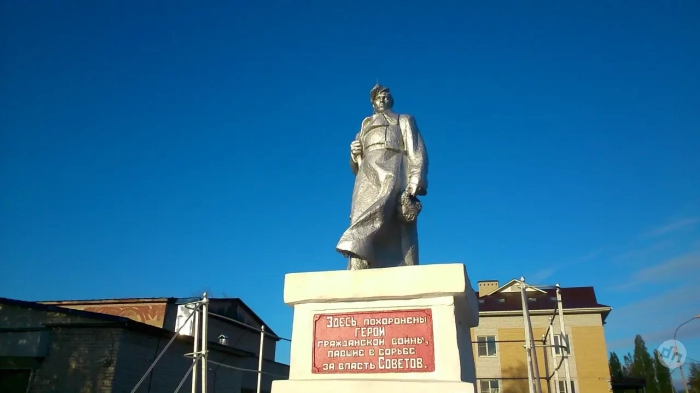 В трёх братских могилах по спискам захоронено более 50 человек. На могиле установлена скульптура - фигура солдата гражданской войны. И надпись: «Здесь похоронены герои Гражданской войны, павшие в борьбе за Советскую власть». Постамент – три с половиной метра; фигура солдата - три метра. И всё!