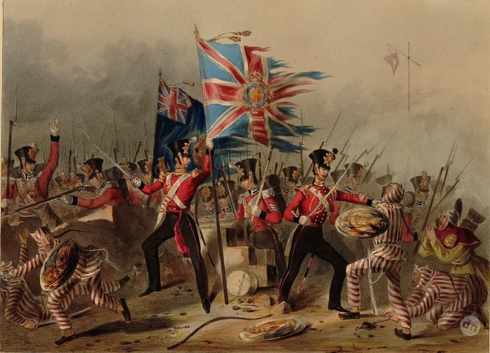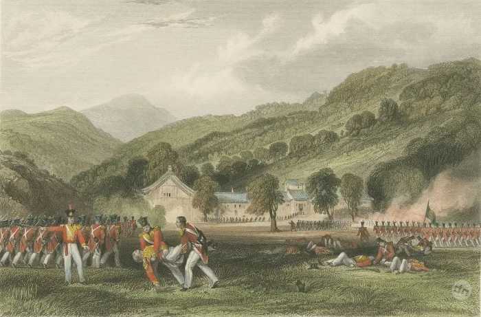 Британцы решили преследовать отступающих, но в сельской местности успехи у них были значительно жиже, более того, 29 мая толпа из 20 тысяч китайских крестьян с ножами и самодельными пиками окружила отряд из 60 сипаев, загнала их на рисовые чеки и осаждала там два часа, убив четверых и ранив порядка 20 человек. Когда на помощь сипаям пришло подкрепление, солдаты смогли отступить в захваченный накануне форт, который также был осаждён крестьянами (китайские источники уверяют, что один из солдат изнасиловал жену местного жителя Вый Шаогуана, потому крестьяне так и взбеленились). Генерал Хью Гоф, главнокомандующий британскими войсками в Китае, направил сообщение губернатору Гуанчжоу Юй Баочуню, что если толпа не разойдётся, то он сравняет Кантон с землёй, и тот призвал крестьян разойтись. Мелкий эпизод, но в современном Китае его раздули до полноценного национального мифа: народное сопротивление захватчикам и трусливый цинский чиновник, призывающий героических крестьян разойтись...
