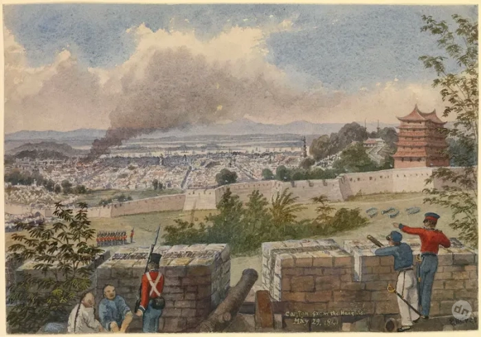 Когда войска Её величества 25 мая заняли господствующие над Гуанчжоу высоты, воинство Ишана побежало из города. Одновременно местный пролетариат начал грабить иностранные фактории, что заставило англичан не медлить с занятием города. Под прикрытием огня плоскодонной «Немезиды» и съёмочных кораблей «Сульфур» и «Старлинг» в окрестностях Гуанчжоу высадился британский десант порядка 1500 человек (всего было несколько больше, но полторы тысячи участвовало в боях). Наличие кораблей было далеко не лишним: местность оказалась сильно пересечённая, так что артиллерию десантникам пришлось оставить в тылу. Штурм начали к вечеру, когда подтянулась артиллерия. Английские бригады (в данном случае не постоянные соединения, а 4 отряда, на которые был разбит десант) атаковали в колоннах, уступами с левого фланга. Впрочем, план сорвали китайцы, сбежав из фортов до подхода английских колонн.
