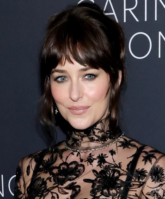 35-летняя актриса стала звездой вечера и заметно выделялась среди остальных селебрити. Она пришла в кружевном и полностью прозрачном платье Gucci, а под него надела чёрное нижнее белье. Образ Дакота дополнила укладкой с пучком и серьгами с изумрудами.