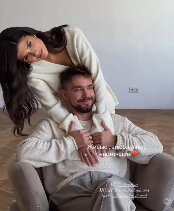 В своих соцсетях супруги поделились видео съёмочного процесса. В роликах можно увидеть, как они танцуют под музыку, позируют в образах, подобранных стилистом Дарьей Детцель, и нежно обнимают друг друга и сына. Отметим, что пара обратилась к тому же фотографу, что снимал их во время беременности Виктории, — Виктории Стоякиной.