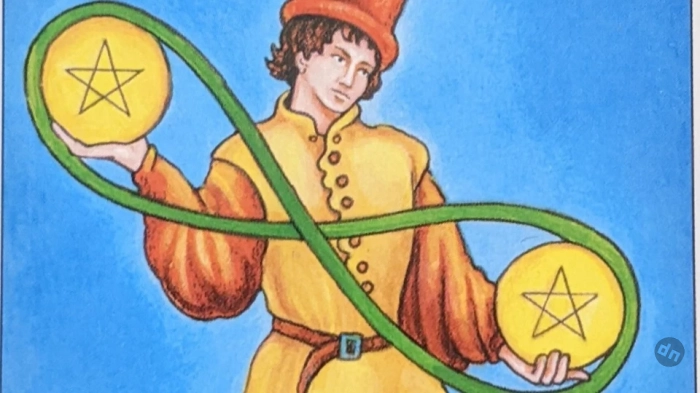 Главное послание Двойки Пентаклей — умение сохранять гармонию посреди перемен.