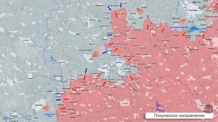 ▪️ На западном участке Покровского участка ВСУ контратаковали в Удачном - наши позиции удержали. Под Покровском ВС РФ пробиваются в Чунишино и в покровском мкр Лазурный. На восточном участке - встречные бои, ВСУ стянули на этот участок значительные резервы. Ожесточенное сражение идет за Никаноровку. ВС РФ продвигаются в направлении Новониколаевки, Нового Донбасса, Золотого Колодезя, Весёлого. Наши зацепились в юго-западной части Нового Донбасса, а в Золотом Колодезе ведут бои в центре, в районе школы.