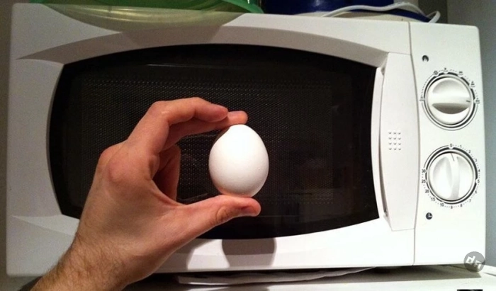 Сырые яйца — главный антагонист микроволновки. При нагреве белок прогревается медленнее желтка, внутри образуется давление, и яйцо буквально взрывается. Итог — грязная печь и риск обжечься.