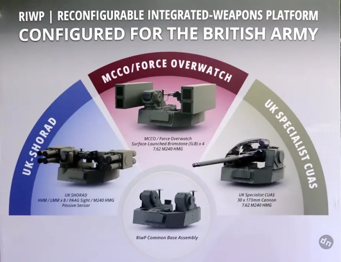 В начале сентября в Лондоне прошла военно-техническая выставка DSEI-2025. Американская компания Moog Inc. приняла участие в ней и продемонстрировала все свои новые разработки. Центральное место в её экспозиции заняли изделия серии RIwP (Reconfigurable Integrated-weapons Platform — «Реконфигурируемая платформа для интегрированного вооружения»), а также рекламные материалы по этому проекту.