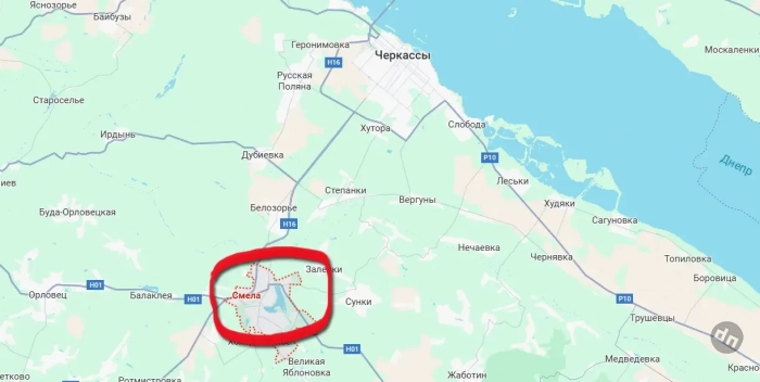 Появляется информация о прилётах в городе Смела, которая после удара ВС РФ «Геранями» по Крюковскому мосту в Кременчуге стала важным для ВСУ узлом логистики в плане переброски личного состава и перевозки грузов из правобережной части Украины в левобережную. От Смелы идут дороги как на Кременчуг, так и на Черкассы и Киев.