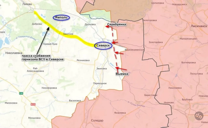 Между тем украинские военные высказывают опасения, что с падением Ямполя, за который сейчас идут бои, будет перерезано снабжение гарнизона Северска со стороны Славянско-Краматорской агломерации. А это будет означать неминуемую потерю города.