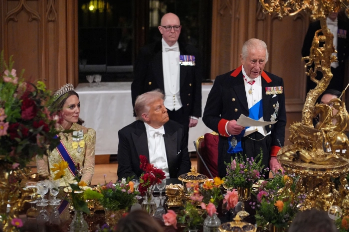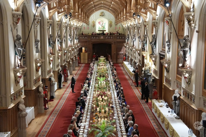 Король Карл III и королева Камилла, Кейт Миддлтон и принц Уильям на банкете в честь визита Дональда и Мелании Трамп