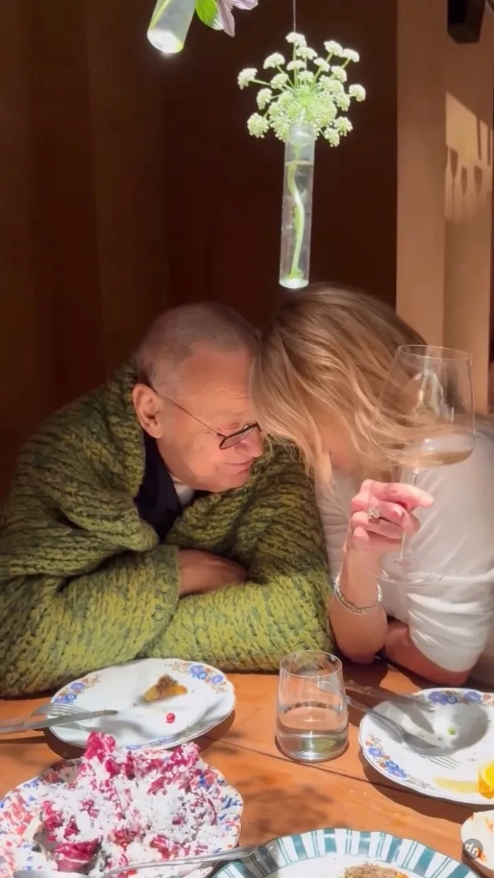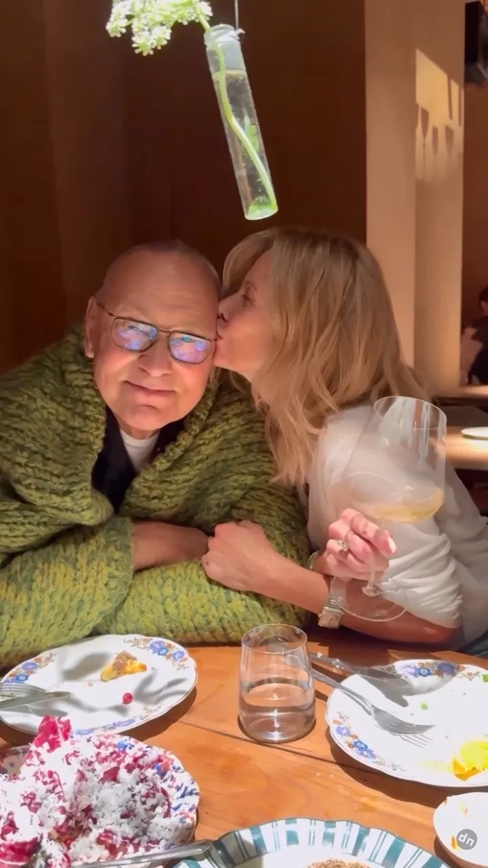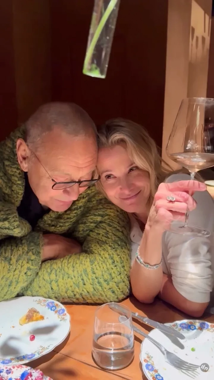 Юлия Высоцкая поделилась в инстаграме* новым видео с 88-летним Андреем Кончаловским. В ролике под песню Джо Дассена Et si tu n'existais pas супруги сидят в ресторане, обнимаются и пьют вино. В какой-то момент 52-летняя Высоцкая целует мужа в щёку, а он улыбается.
