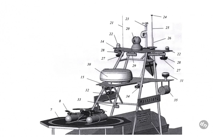 На крыше корпуса предусмотрена А-образная мачта для монтажа радиоэлектронных устройств. На борту «Макаровца» имеются система дистанционного и автономного управления движением, различные средства навигации, радиолокатор, эхолот, а также оптико-электронная станция и несколько устройств связи. Также предусмотрена возможность подключения дополнительных приборов разного назначения.