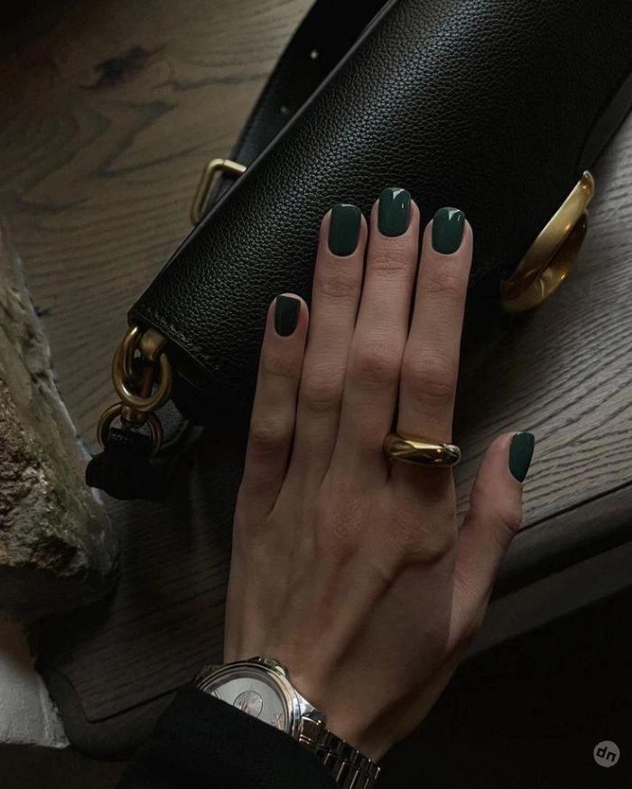 Густой мистический зеленый. Смотрится изысканно и гармонично, особенно с золотыми акцентами.
