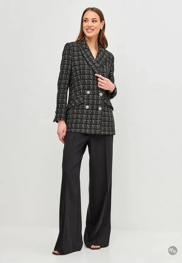 Мода постепенно смещается от оверсайз-силуэтов к более женственным линиям. Полуприталенные жакеты с акцентированными плечами делают талию визуально уже, а легкая баска подчеркивает бедра. Такие модели легко комбинировать: носить с брюками, юбками или даже поверх вечернего платья, создавая многослойные образы.