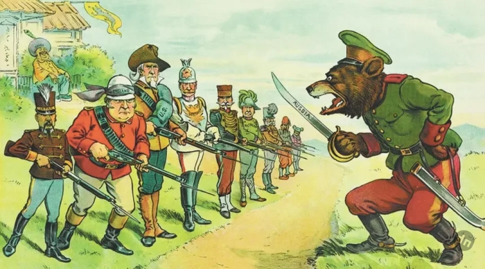 Со времен Наполеоновских войн отношения между Россией и Пруссией (а потом — Германией, II Рейхом) были исключительно дружественными. Это хорошо понимали во Франции, где на ратификацию Александром III 8 января 1894 года явно невыгодной нашей стране «военной конвенции», а затем вступлением в Антанту, откликнулись издевательской карикатурой, на которой разбитная девица Марианна спрашивает простодушного русского медведя: