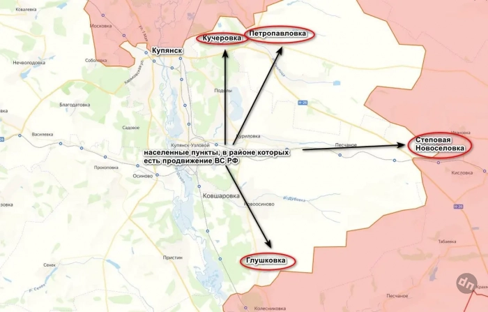 Согласно информации, предоставленной военным экспертом Андреем Марочко, российские войска продвинулись к северо-востоку от Купянска в районах Кучеровки и Петропавловки. С юга наши уничтожили укрепрайон ВСУ, продвинулись в районе Глушковки и сумели выровнять линию фронта. Также после длительных и интенсивных боев нашим удалось вскрыть оборону противника северо-западнее Степовой Новоселовки и взять под контроль лесополосу, выбив оттуда врага.