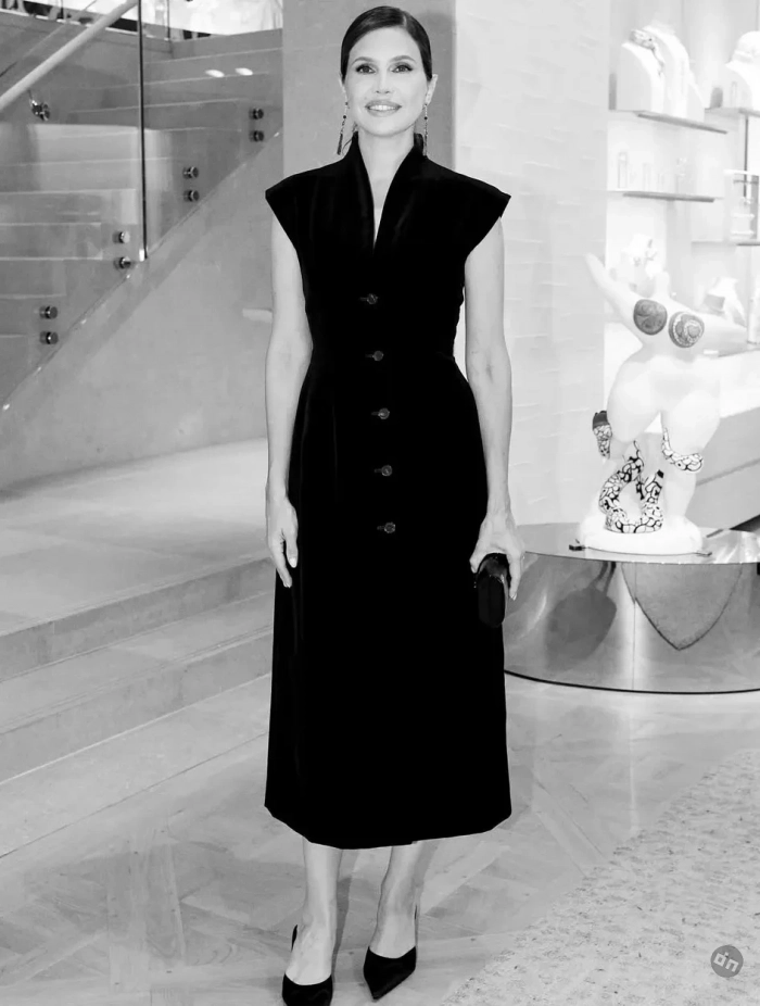 44-летняя Даша Жукова пришла на ужин в чёрном платье с пуговицами и туфлях в тон, а 50-летняя Дельфина Арно позировала в укороченных кожаных брюках и белом жакете.